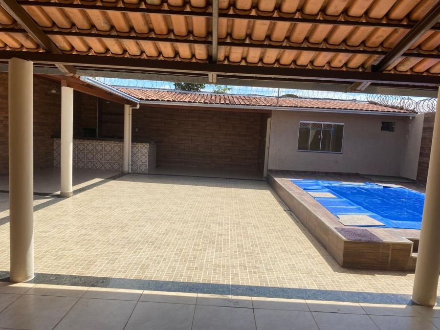 ALUGA- SE Excelente casa de laje : 02 quartos , sendo 01 com suíte e closet, sala ampla, cozinha com armários planejado, balcão de pedra natural, varandas , garagem coberta, área de serviço coberta, varanda gourmet com fogão coktop, churrasqueira, piscina , dependência externa com banheiro. Rua P no bairro industrial